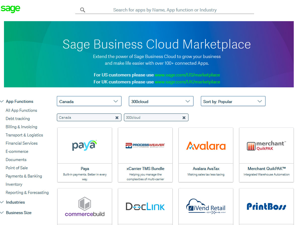 Voici un lien vers Sage Business Cloud Marketplace filtré pour les produits compatibles Sage 300 pour le Canada.