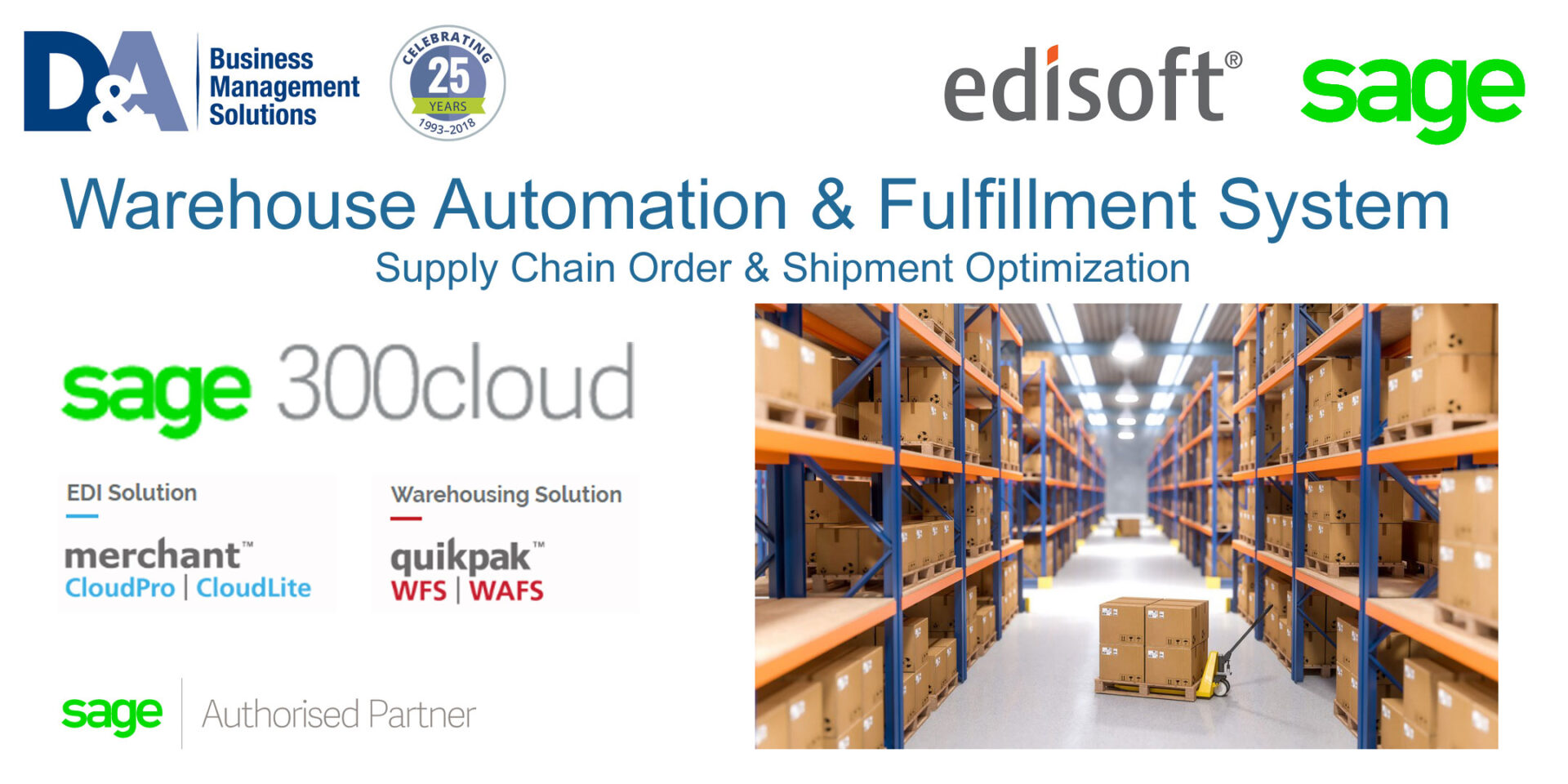 La solution présenté qui est certifié par Sage associe la comptabilité robuste de Sage 300 au système d’exécution et d’automatisation d’entrepôt d’Edisoft.